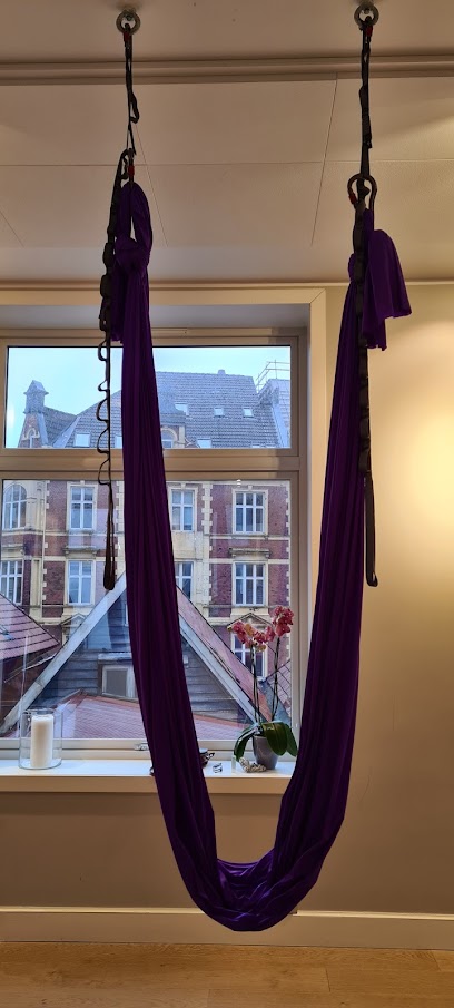 Fantastisk opplevelse: I went to an aerial yoga class here, and loved it. The studio has a relaxed feel to it with water and tea available, although there is not a lot of room for changing and showering. You can borrow mats and blankets. The instructor (Birgitte) was very comfortable and approachable, and explained everything nicely. Each class has only a few places, which allowed the instructor to be attentive to all the students. The aerial part was a bit intimidating, but I wanted to make the most of the class, so by trusting the silks and the instructor I got through all the poses with no problems. It didn't feel so heavy at the time, but I was surprisingly sore the next day. It was wonderful relief for my back and spine. The only drawback is the price: 250 for a drop-in class, 200 for students.. They have 20% off most prices for students, so using that and a "clip card" would bring the price down to 160 kr per class.