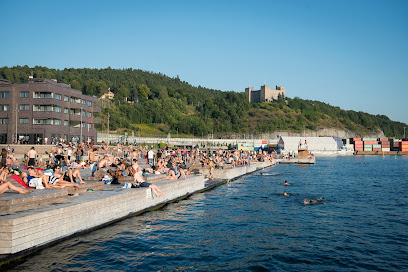 Fantastisk opplevelse: Et fint brygge/strand område omtrent mitt i sentrum av Oslo. Fine bademuligheter, masse sitte/liggeplasser toaletter og utedusj. Masse spisesteder og muligheter for å kjøpe forfriskninger i nærheten. Kort vei fra kollektivtrafikk. Eget område med sandstrand og grunt vann for de små en perle plass rett og slett